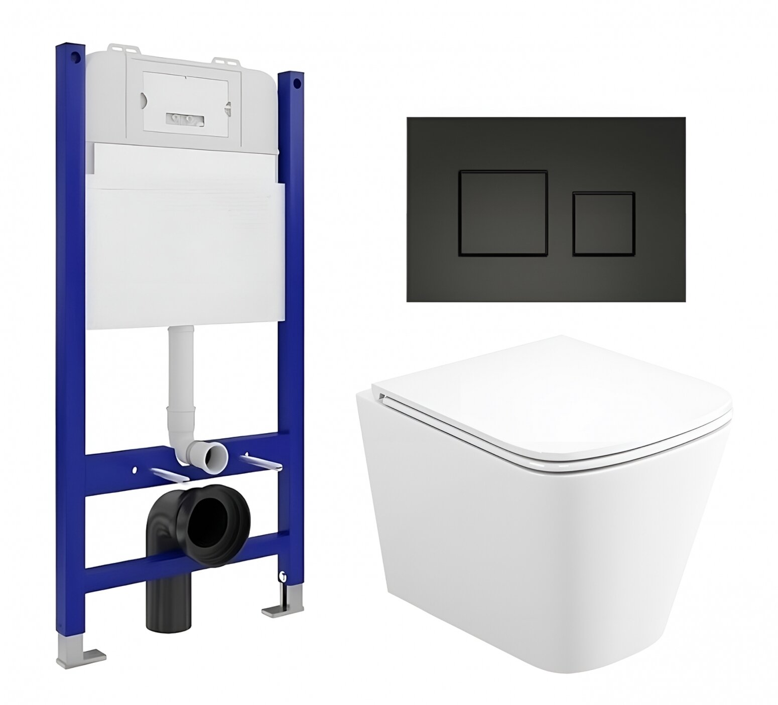 Комплект 3 в 1 инсталляция Enio Tecnico 50 EN8050050 + Унитаз подвесной Enio Binario EN4215896 + кнопка черная матовая Cubo