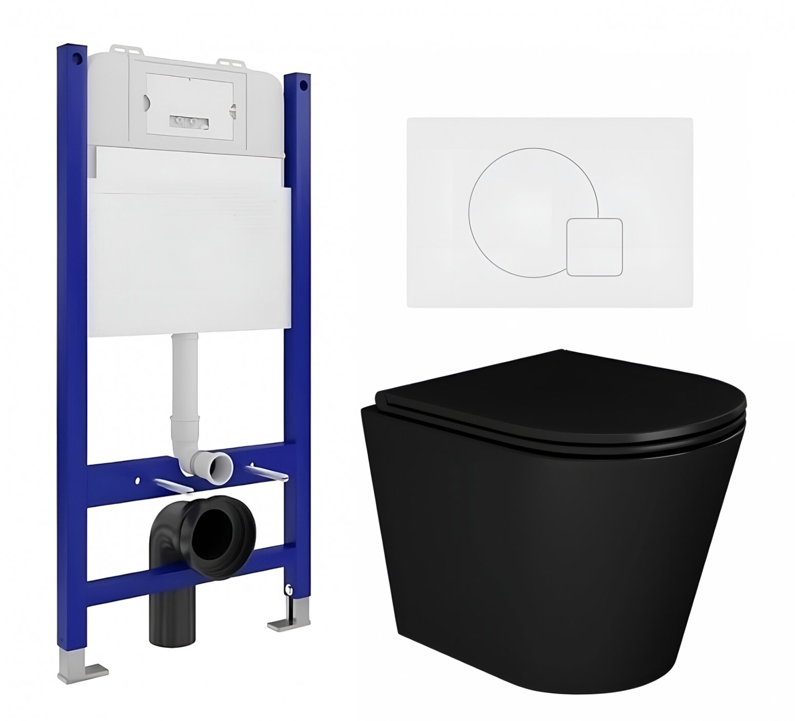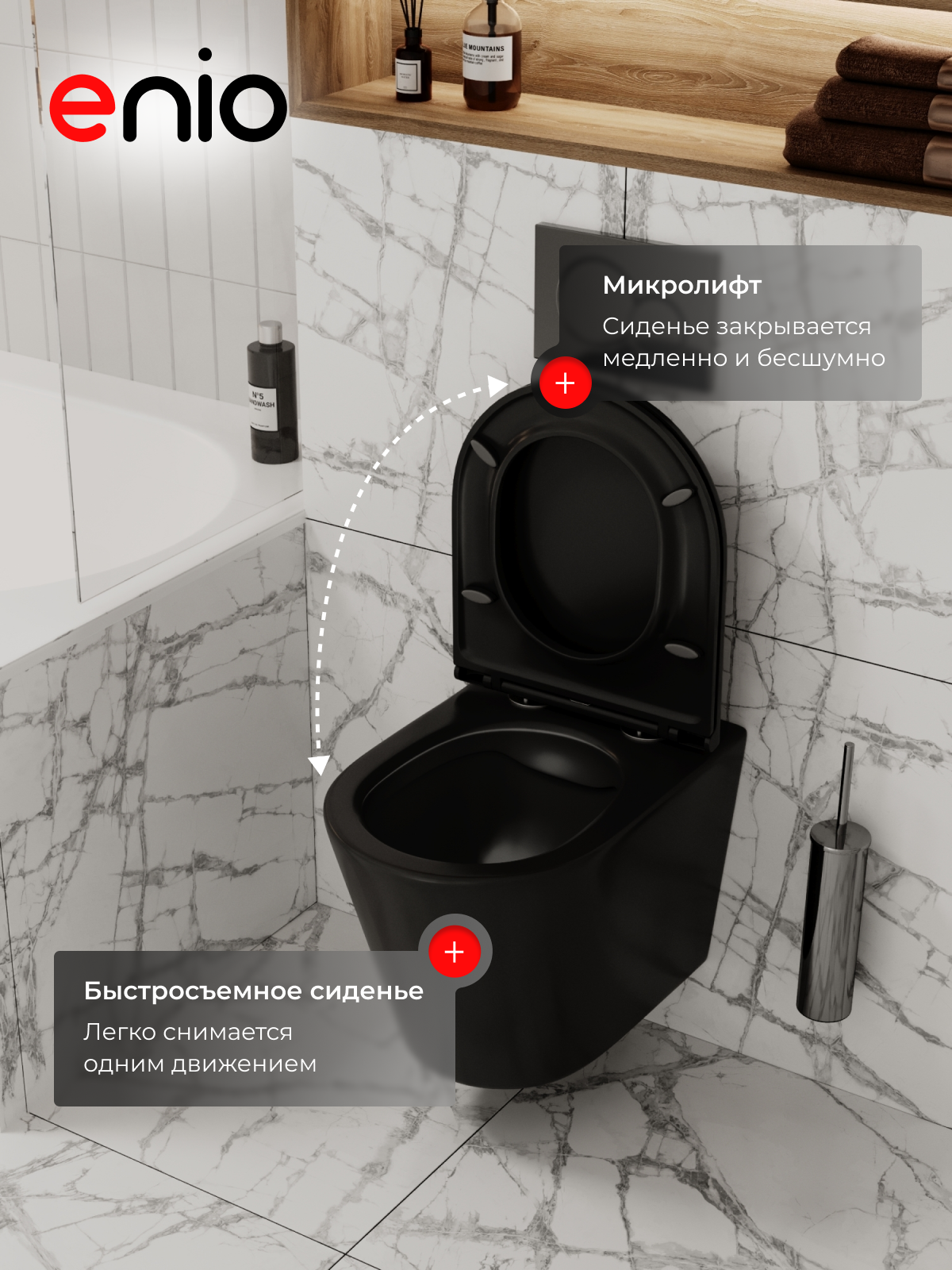 Купить Комплект 3 в 1 инсталляция Enio Tecnico 50 EN8050050 + Унитаз подвесной Enio Cento BL черный EN4280035 + кнопка белая матовая Geometria с доставкой по всей России.