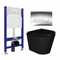 Комплект 3 в 1 инсталляция Enio Tecnico 50 EN8050050 + Унитаз подвесной Enio Cento BL черный EN4280035 + кнопка хром Rettangolo