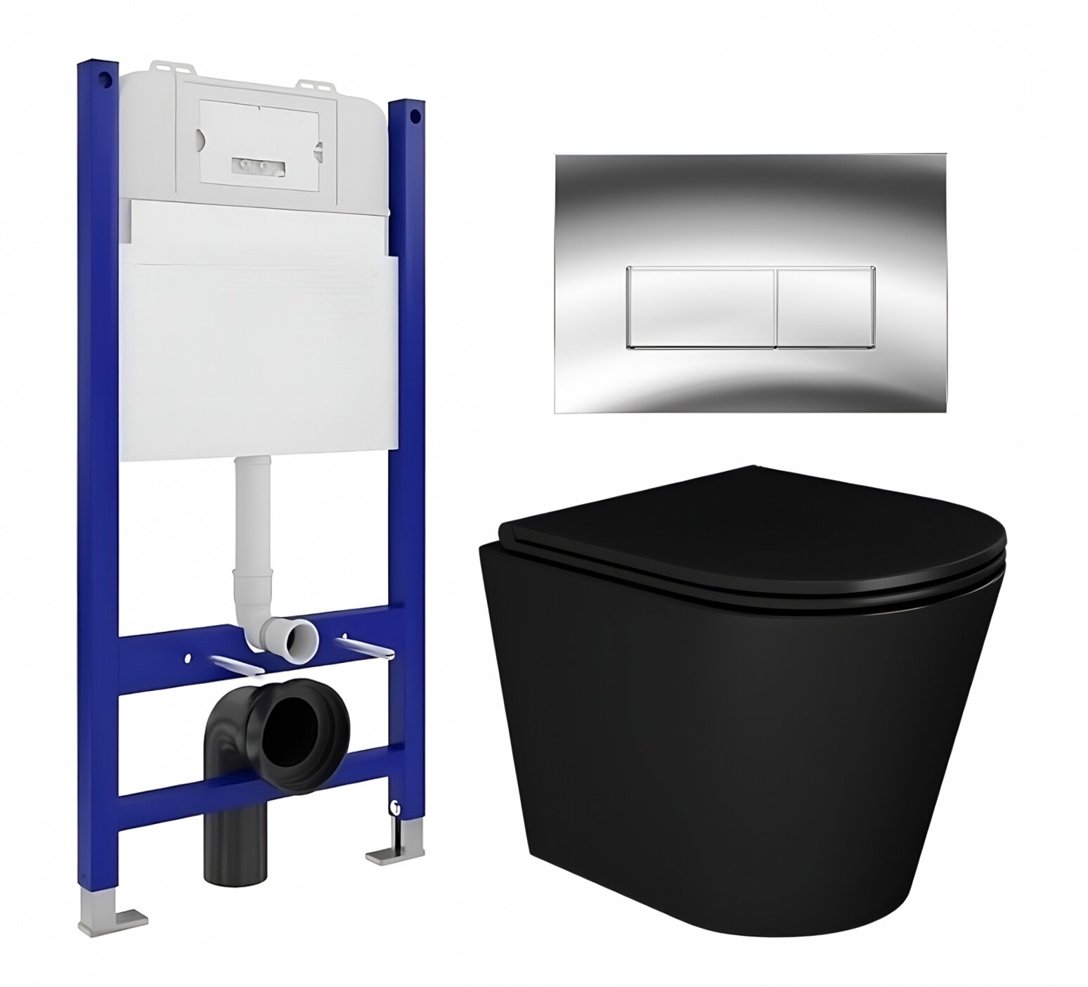 Купить Комплект 3 в 1 инсталляция Enio Tecnico 50 EN8050050 + Унитаз подвесной Enio Cento BL черный EN4280035 + кнопка хром Rettangolo с доставкой по всей России.
