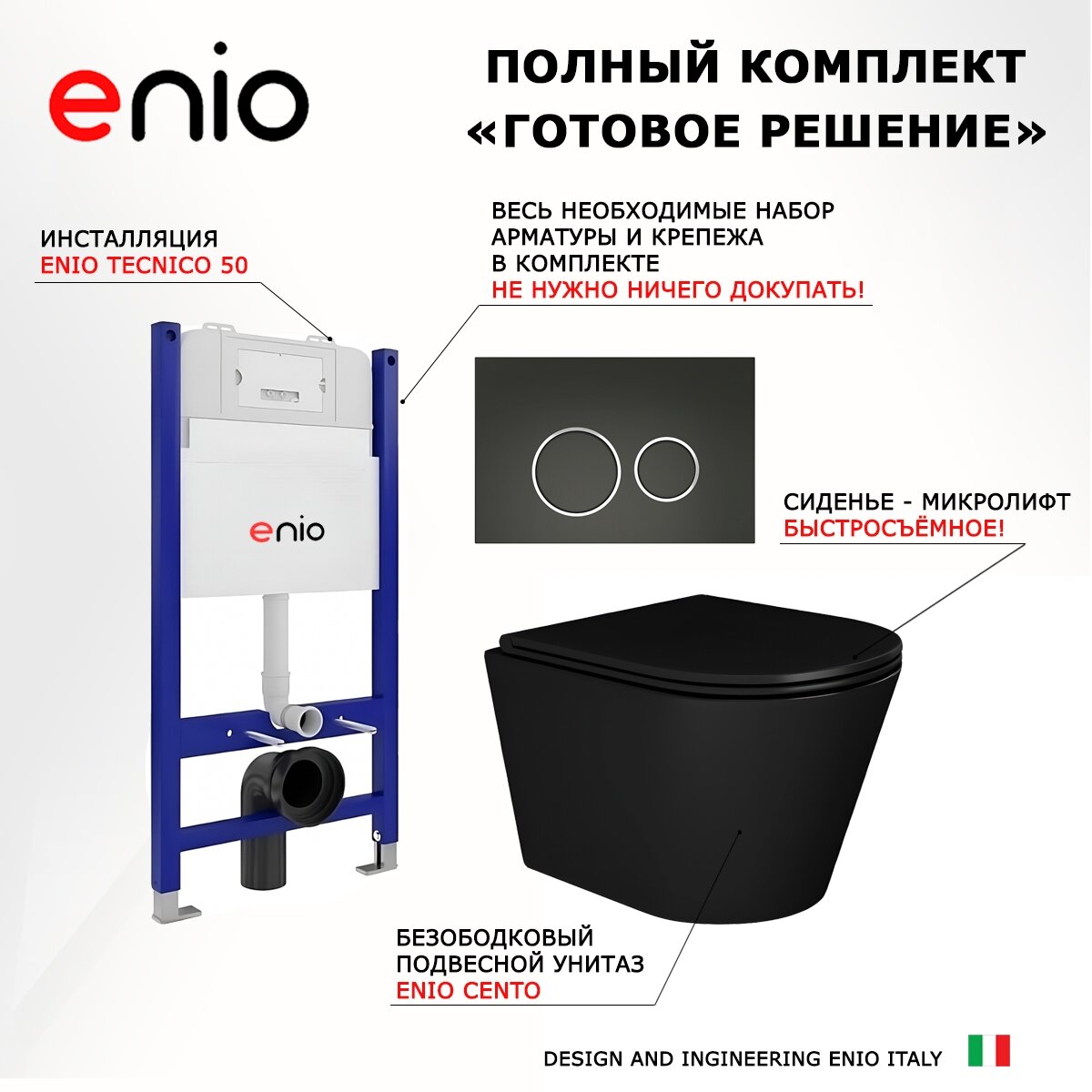 Купить Комплект 3 в 1 инсталляция Enio Tecnico 50 EN8050050 + Унитаз подвесной Enio Cento BL EN4280035 + кнопка черная матовая, окантовка хром Rotondo с доставкой по всей России.