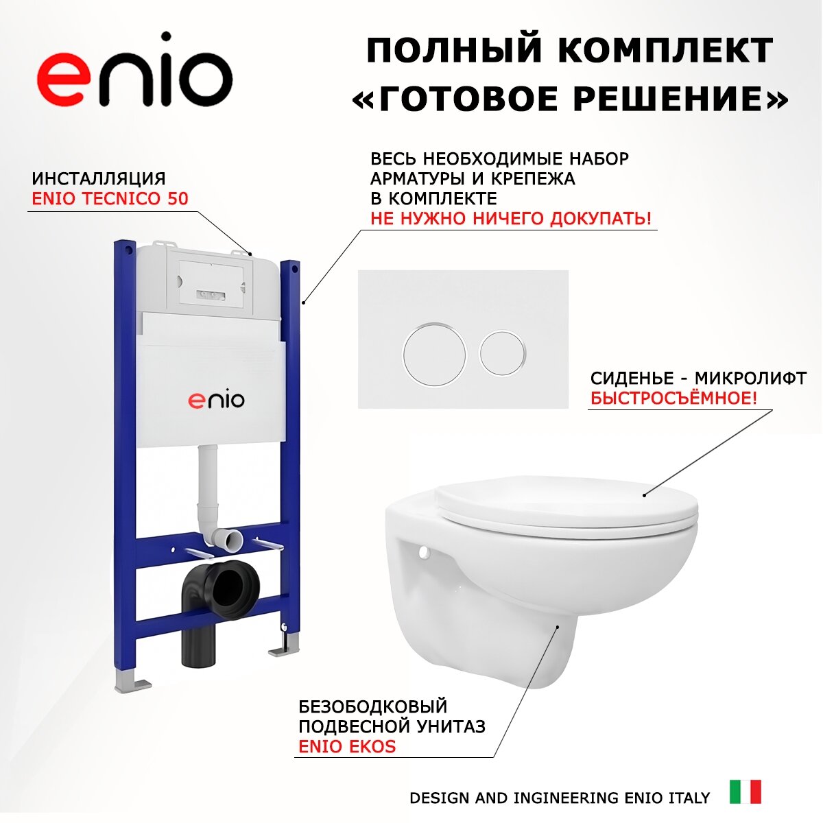Купить Комплект 3 в 1 инсталляция Enio Tecnico 50 EN8050050 + Унитаз подвесной Enio Ekos EN0170571 + кнопка белая, окантовка хром Rotondo с доставкой по всей России.