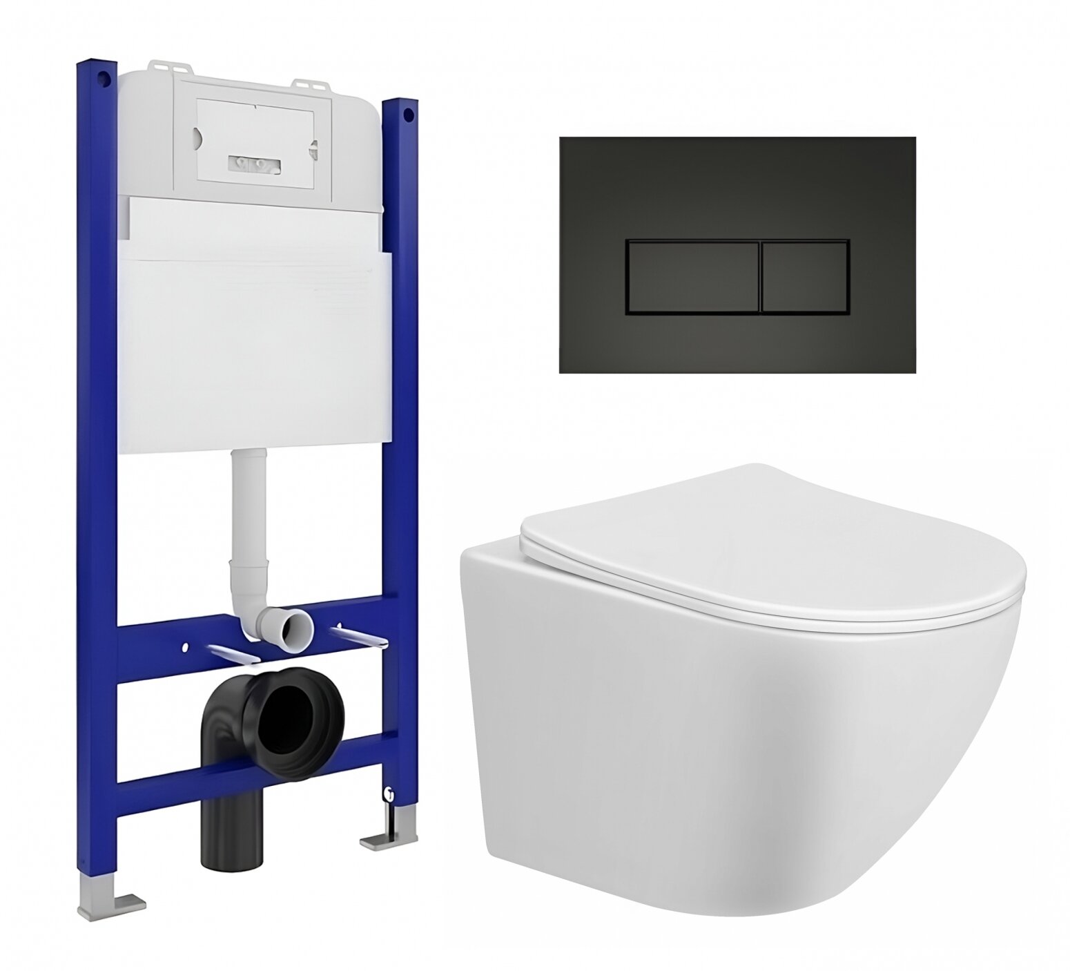 Купить Комплект 3 в 1 инсталляция Enio Tecnico 50 EN8050050 + Унитаз подвесной Taliente Amato AM25010 + кнопка черная матовая Rettangolo с доставкой по всей России.