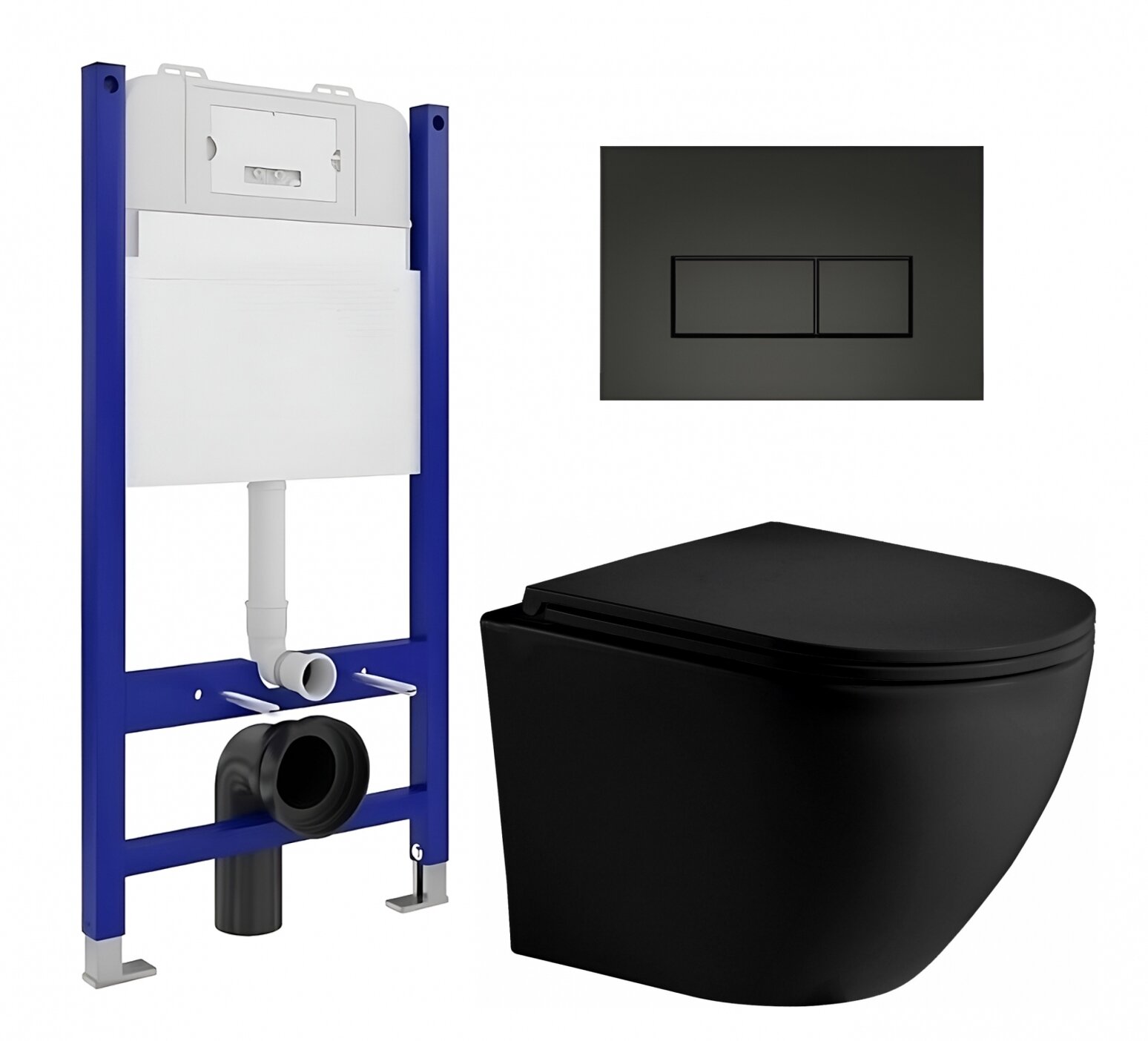 Купить Комплект 3 в 1 инсталляция Enio Tecnico 50 EN8050050 + Унитаз подвесной Weltwasser WW Merzbach 043 MT-BL + кнопка черная матовая Rettangolo с доставкой по всей России.