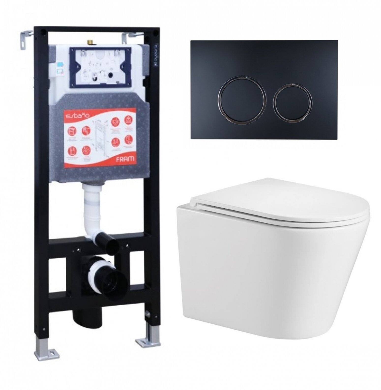 Комплект 3 в 1 инсталляция ESBANO FRAM + Подвесной унитаз WeltWasser Salzbach 043 GL-WT + кнопка черная матовая: сравнение цен, характеристики, фото, актуальное наличие и цены.