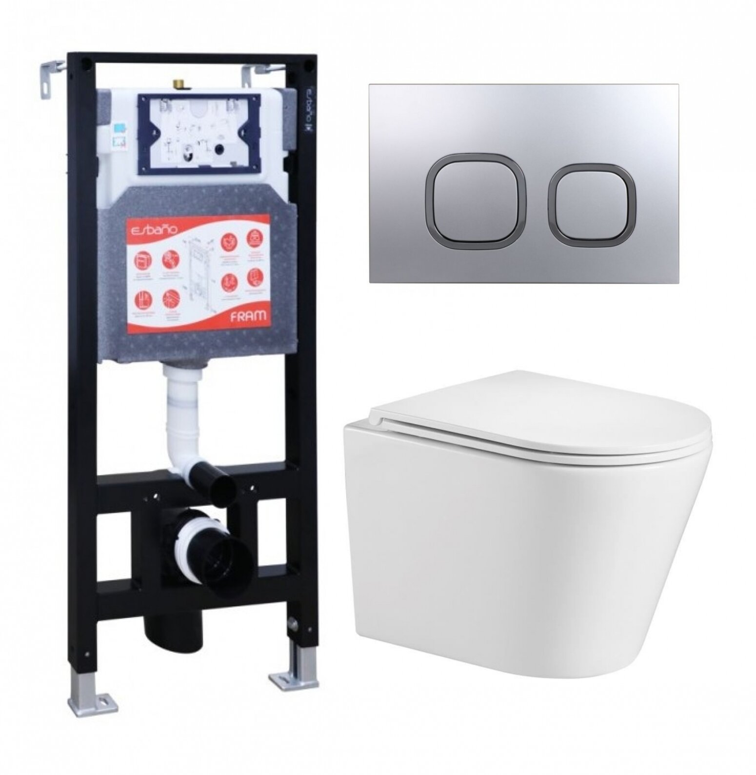 Комплект 3 в 1 инсталляция ESBANO FRAM + Подвесной унитаз WeltWasser Salzbach 043 GL-WT + кнопка хром матовая: сравнение цен, характеристики, фото, актуальное наличие и цены.