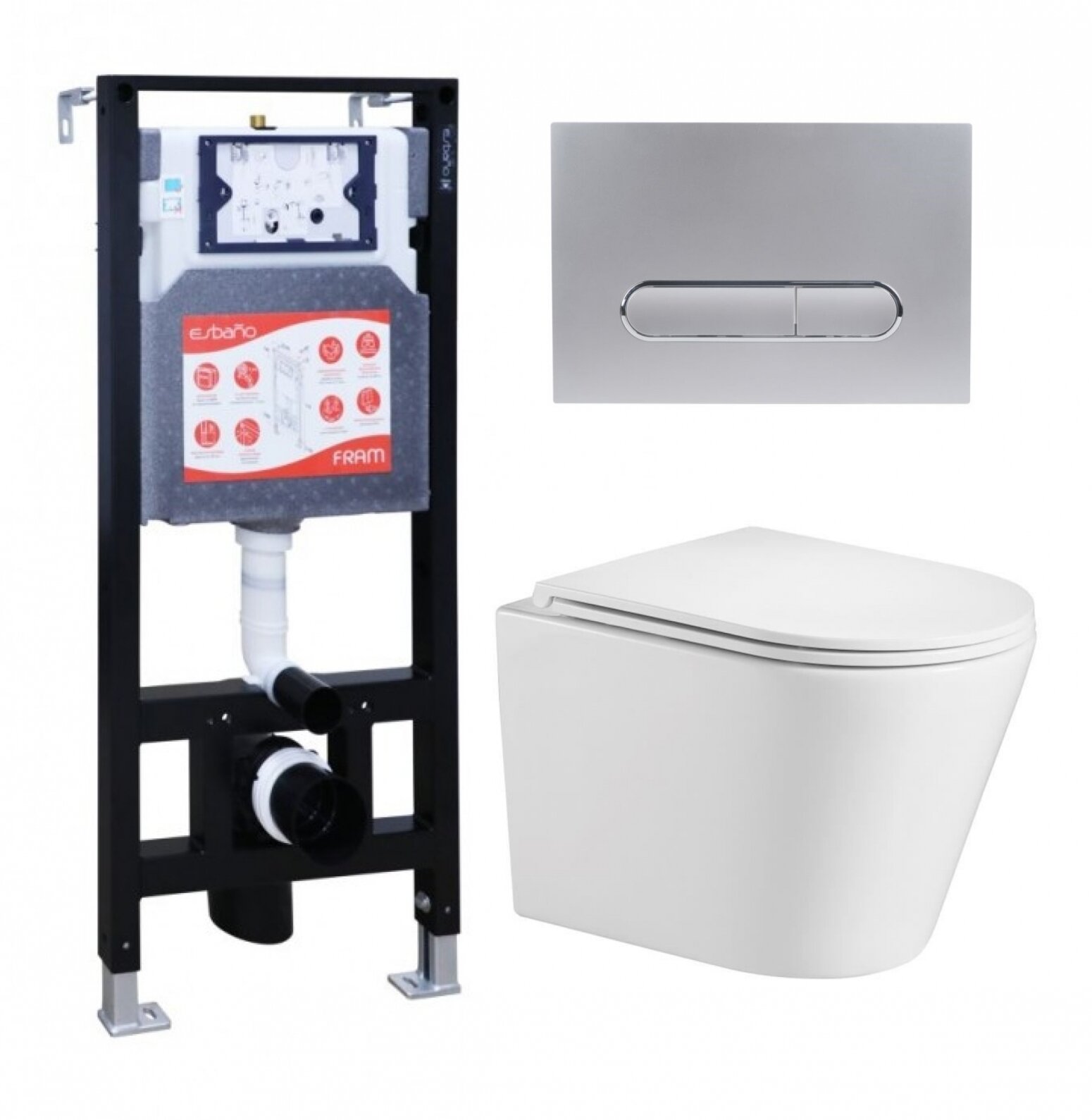Купить Комплект 3 в 1 инсталляция ESBANO FRAM + Подвесной унитаз WeltWasser Salzbach 043 GL-WT + кнопка хром матовая с доставкой по всей России.