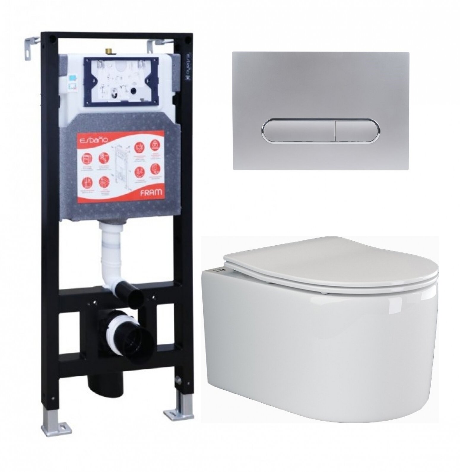 Комплект 3 в 1 инсталляция ESBANO FRAM + Унитаз подвесной Ceramica Nova Moments CN3003 + кнопка хром матовая: сравнение цен, характеристики, фото, актуальное наличие и цены.