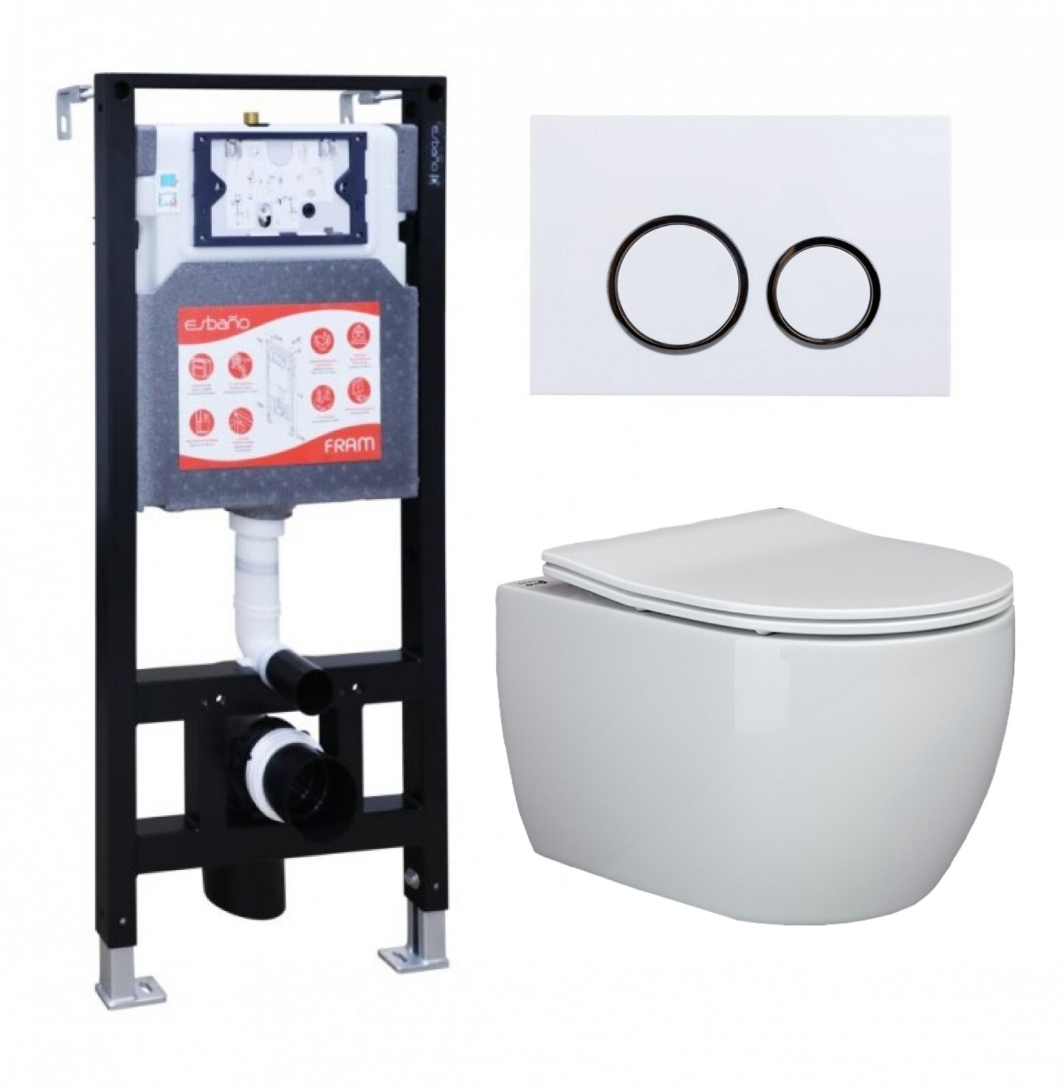 Комплект 3 в 1 инсталляция ESBANO FRAM + Унитаз подвесной Ceramica Nova Play CN3001 + кнопка белая глянцевая: сравнение цен, характеристики, фото, актуальное наличие и цены.