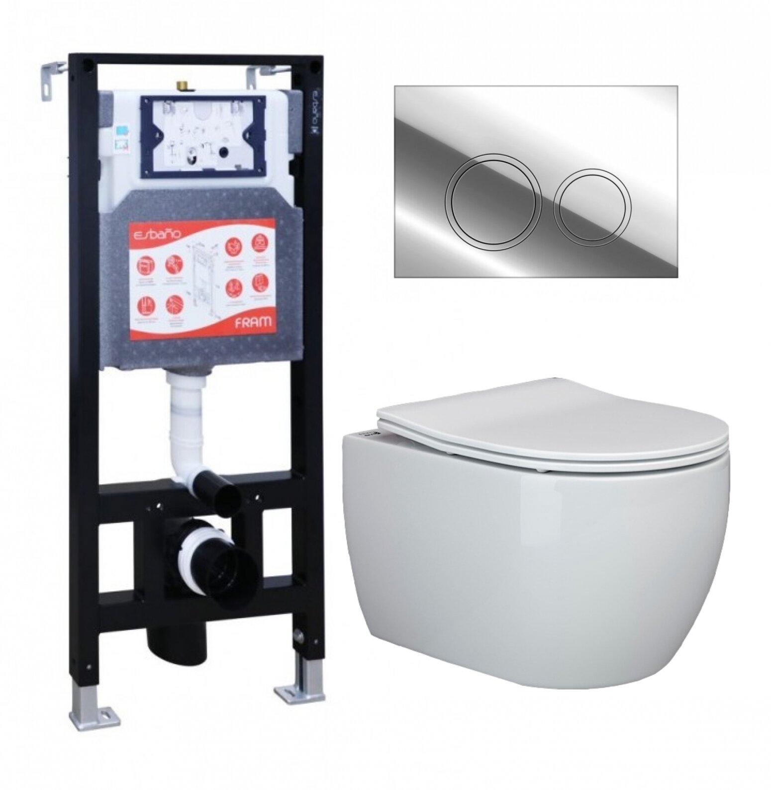 Купить Комплект 3 в 1 инсталляция ESBANO FRAM + Унитаз подвесной Ceramica Nova Play CN3001 + кнопка хром глянцевая с доставкой по всей России.