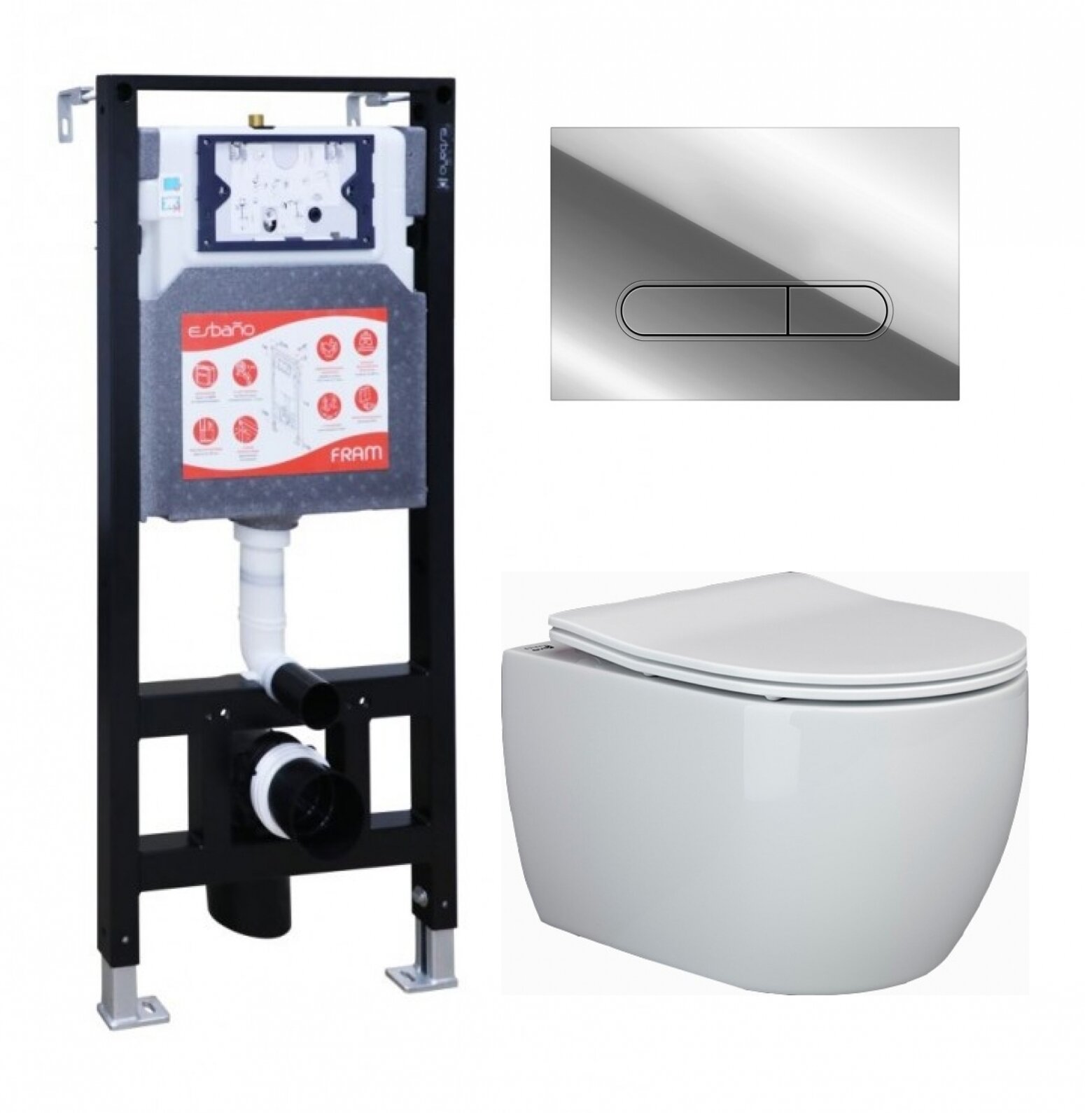 Купить Комплект 3 в 1 инсталляция ESBANO FRAM + Унитаз подвесной Ceramica Nova Play CN3001 + кнопка хром глянцевая с доставкой по всей России.