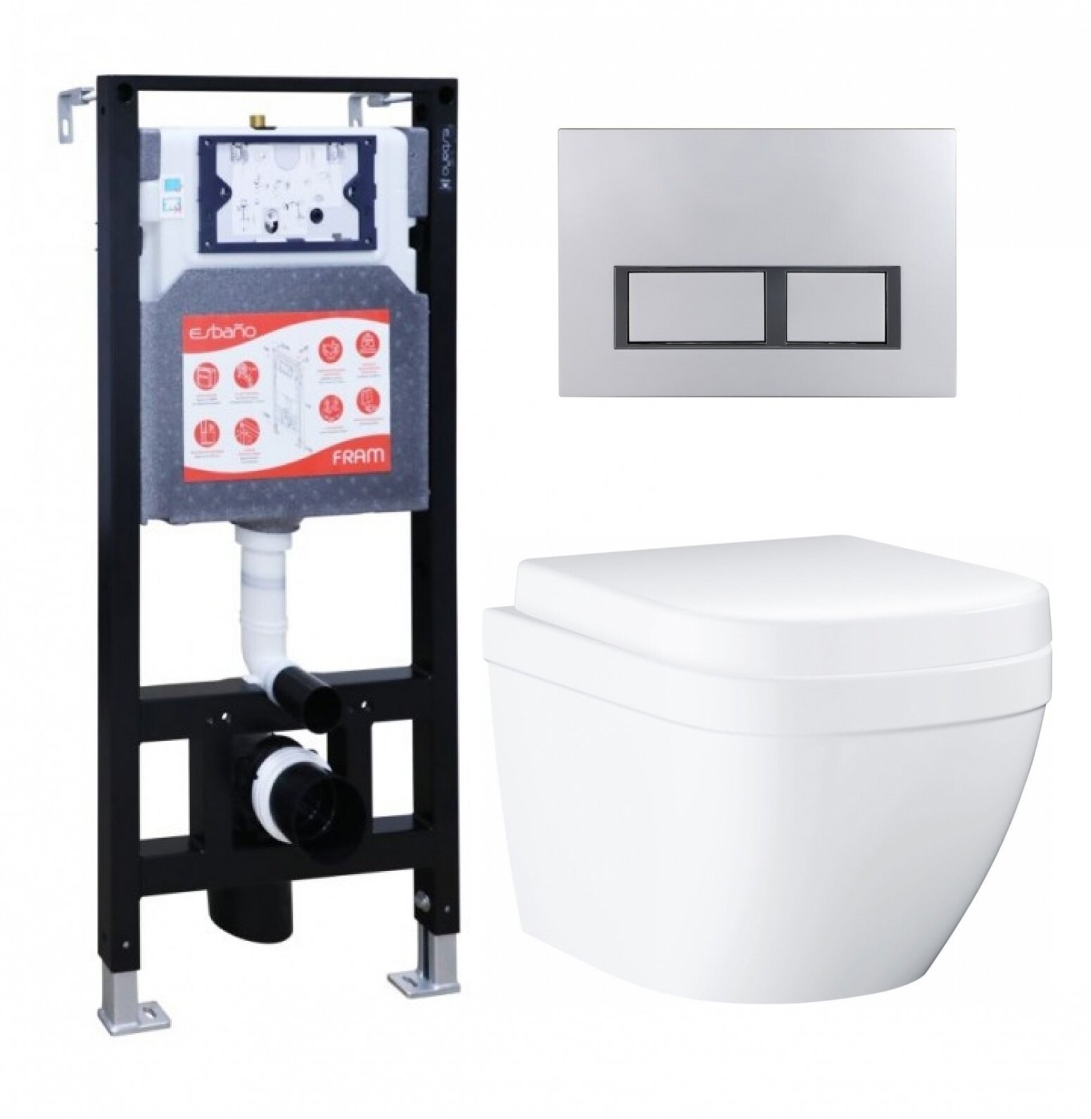 Купить Комплект 3 в 1 инсталляция ESBANO FRAM + Унитаз подвесной Grohe Euro Ceramic 39206000 + кнопка хром матовая с доставкой по всей России.