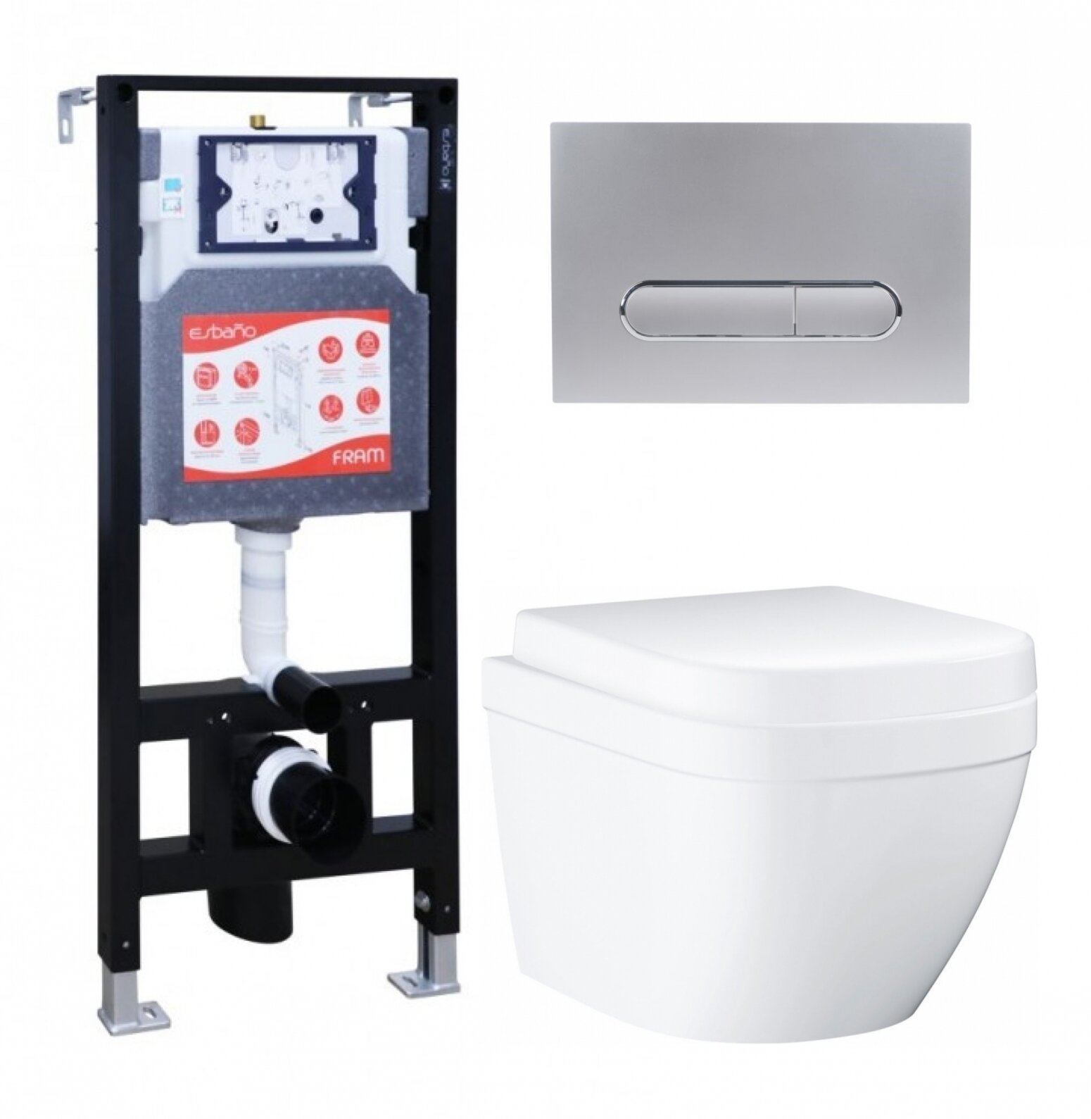 Купить Комплект 3 в 1 инсталляция ESBANO FRAM + Унитаз подвесной Grohe Euro Ceramic 39206000 + кнопка хром матовая с доставкой по всей России.