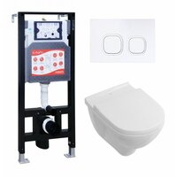Купить Комплект 3 в 1 инсталляция ESBANO FRAM + Унитаз подвесной Villeroy & Boch O Novo Directflush + кнопка белая с доставкой по всей России.