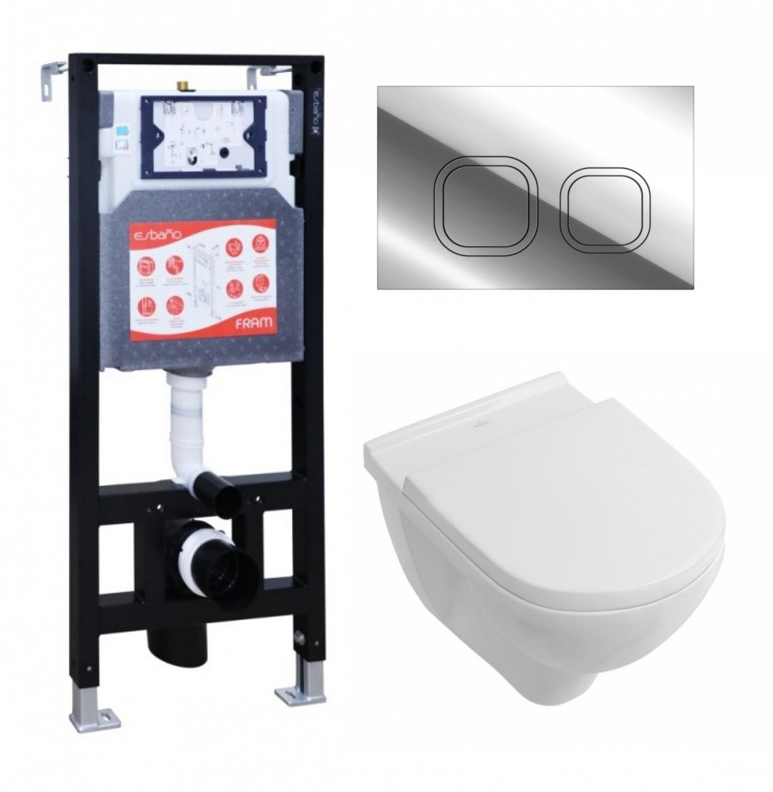 Комплект 3 в 1 инсталляция ESBANO FRAM + Унитаз подвесной Villeroy & Boch O Novo Directflush + кнопка хром глянцевая: сравнение цен, характеристики, фото, актуальное наличие и цены.