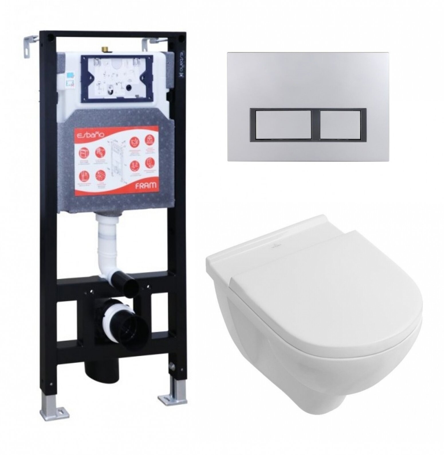 Комплект 3 в 1 инсталляция ESBANO FRAM + Унитаз подвесной Villeroy & Boch O Novo Directflush + кнопка хром матовая: сравнение цен, характеристики, фото, актуальное наличие и цены.