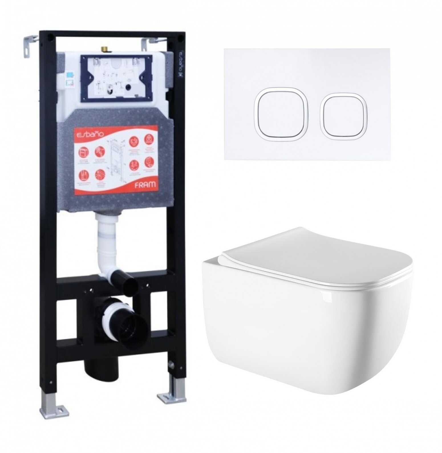 Комплект 3 в 1 инсталляция ESBANO FRAM + Унитаз подвесной Vincea Form VT1-35 + кнопка белая: сравнение цен, характеристики, фото, актуальное наличие и цены.
