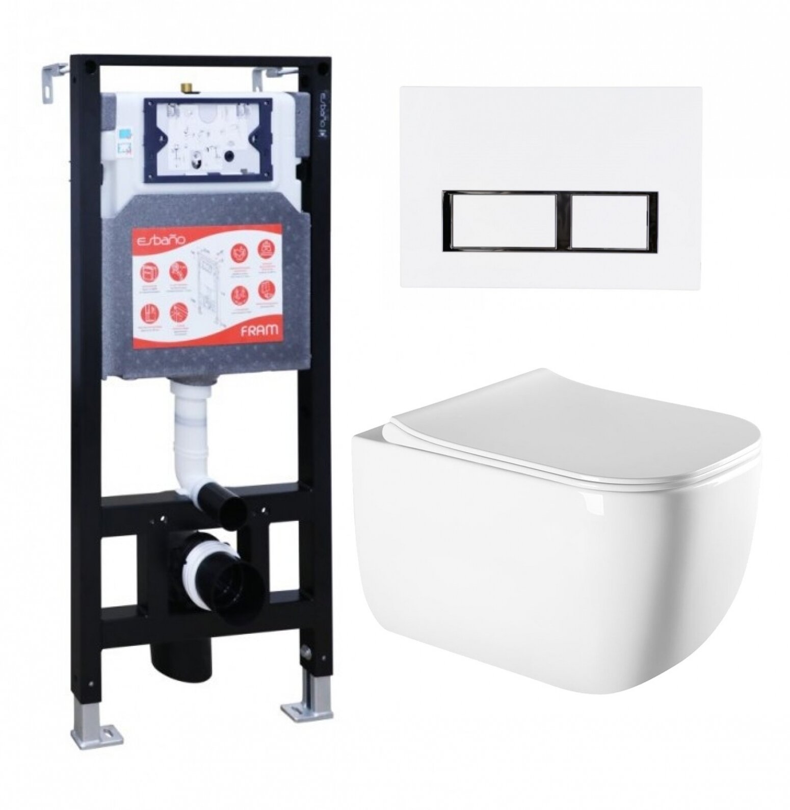 Купить Комплект 3 в 1 инсталляция ESBANO FRAM + Унитаз подвесной Vincea Form VT1-35 + кнопка белая глянцевая с доставкой по всей России.