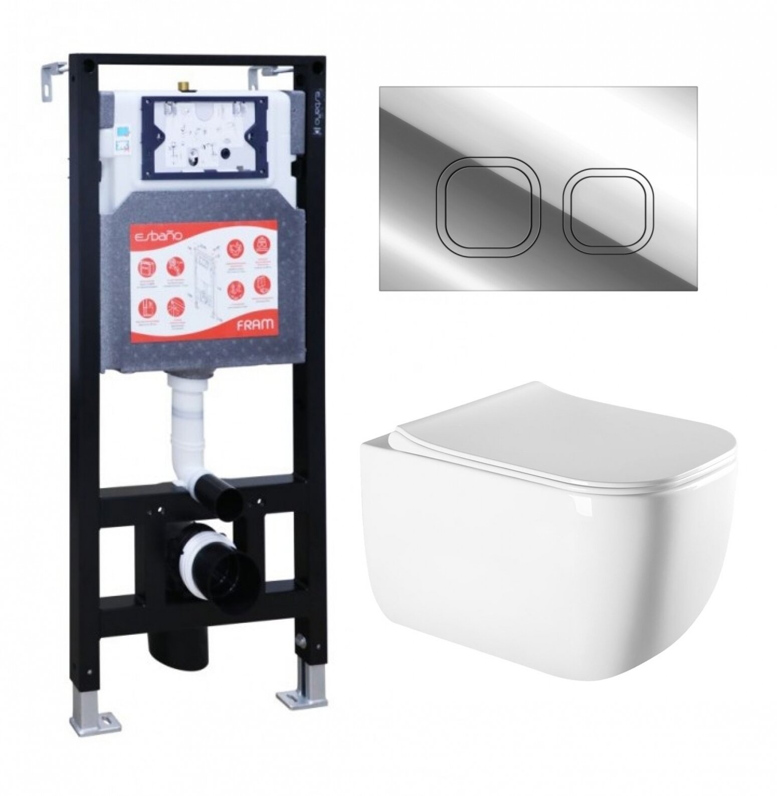 Комплект 3 в 1 инсталляция ESBANO FRAM + Унитаз подвесной Vincea Form VT1-35 + кнопка хром глянцевая: сравнение цен, характеристики, фото, актуальное наличие и цены.