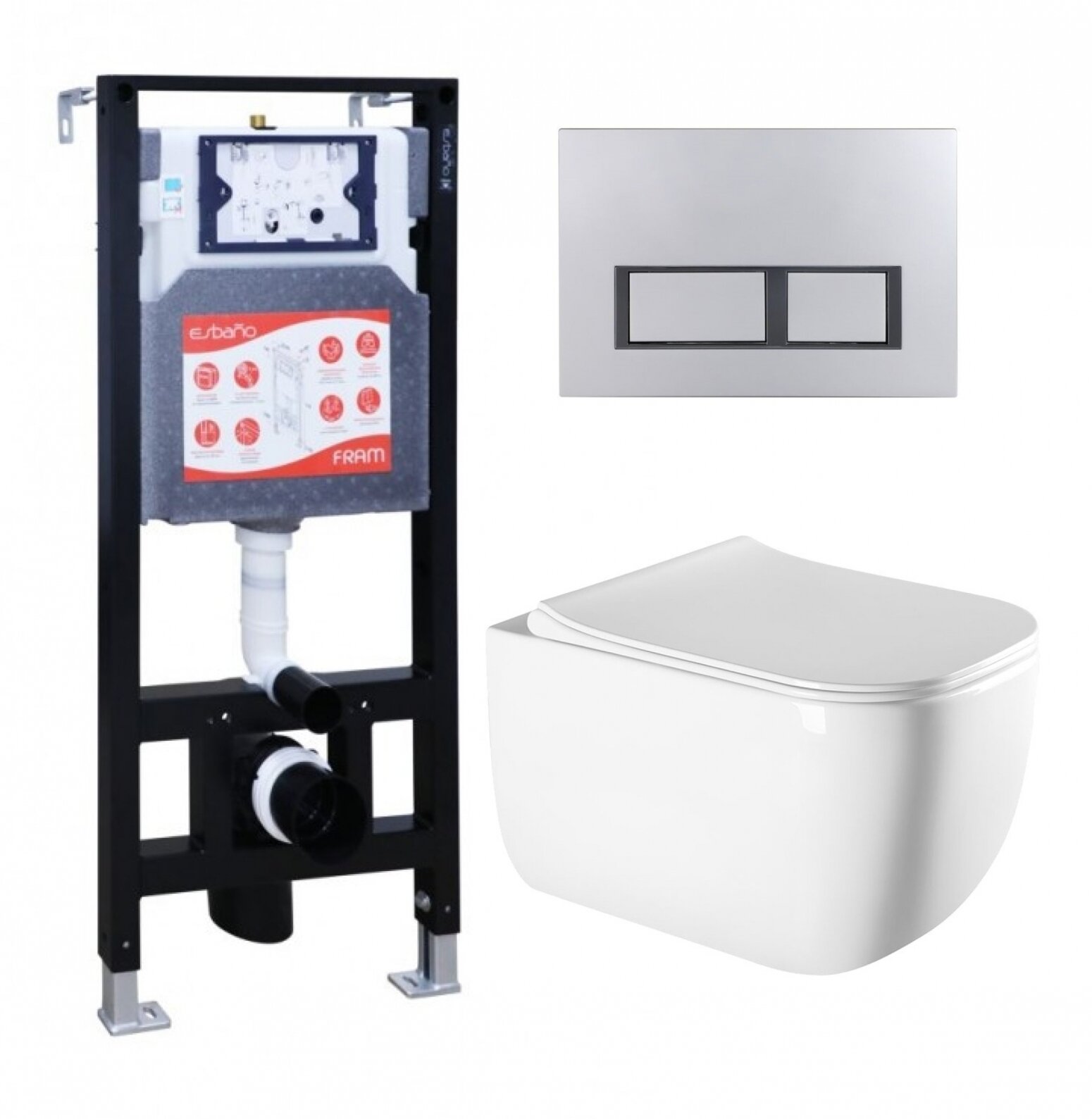 Комплект 3 в 1 инсталляция ESBANO FRAM + Унитаз подвесной Vincea Form VT1-35 + кнопка хром матовая