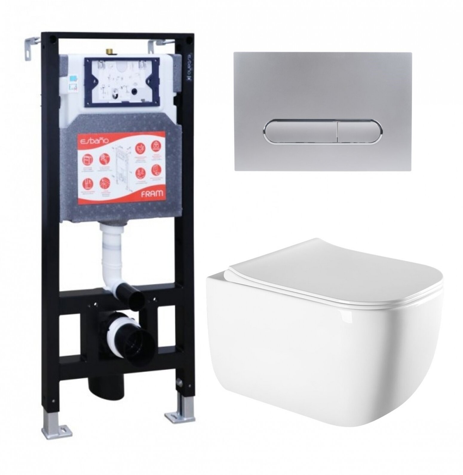 Комплект 3 в 1 инсталляция ESBANO FRAM + Унитаз подвесной Vincea Form VT1-35 + кнопка хром матовая