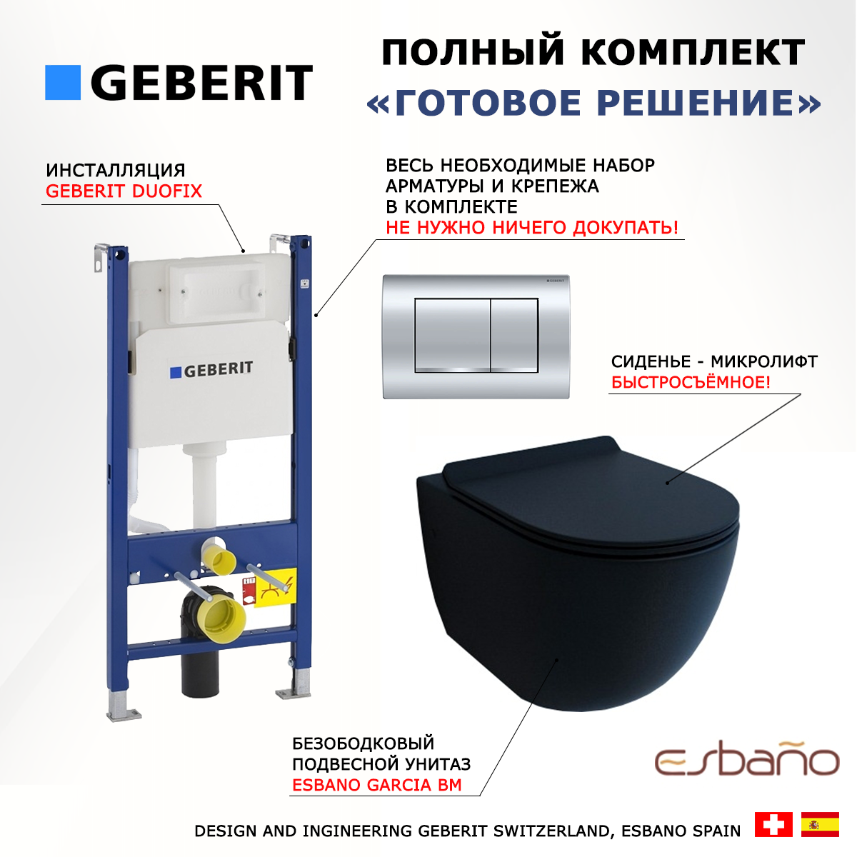 Комплект 3 в 1 инсталляция Geberit Duofix Delta30 458.163.21.1 + Унитаз подвесной Esbano Garcia + кнопка хром: сравнение цен, характеристики, фото, актуальное наличие и цены.