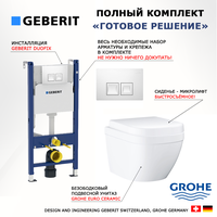 Купить Комплект 3 в 1 инсталляция Geberit Duofix + Унитаз подвесной Grohe Euro Ceramic 39206000 + кнопка белая с доставкой по всей России.