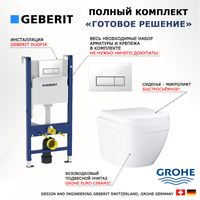 Комплект 3 в 1 инсталляция Geberit Duofix + Унитаз подвесной Grohe Euro Ceramic 39206000 + кнопка белая: сравнение цен, характеристики, фото, актуальное наличие и цены.