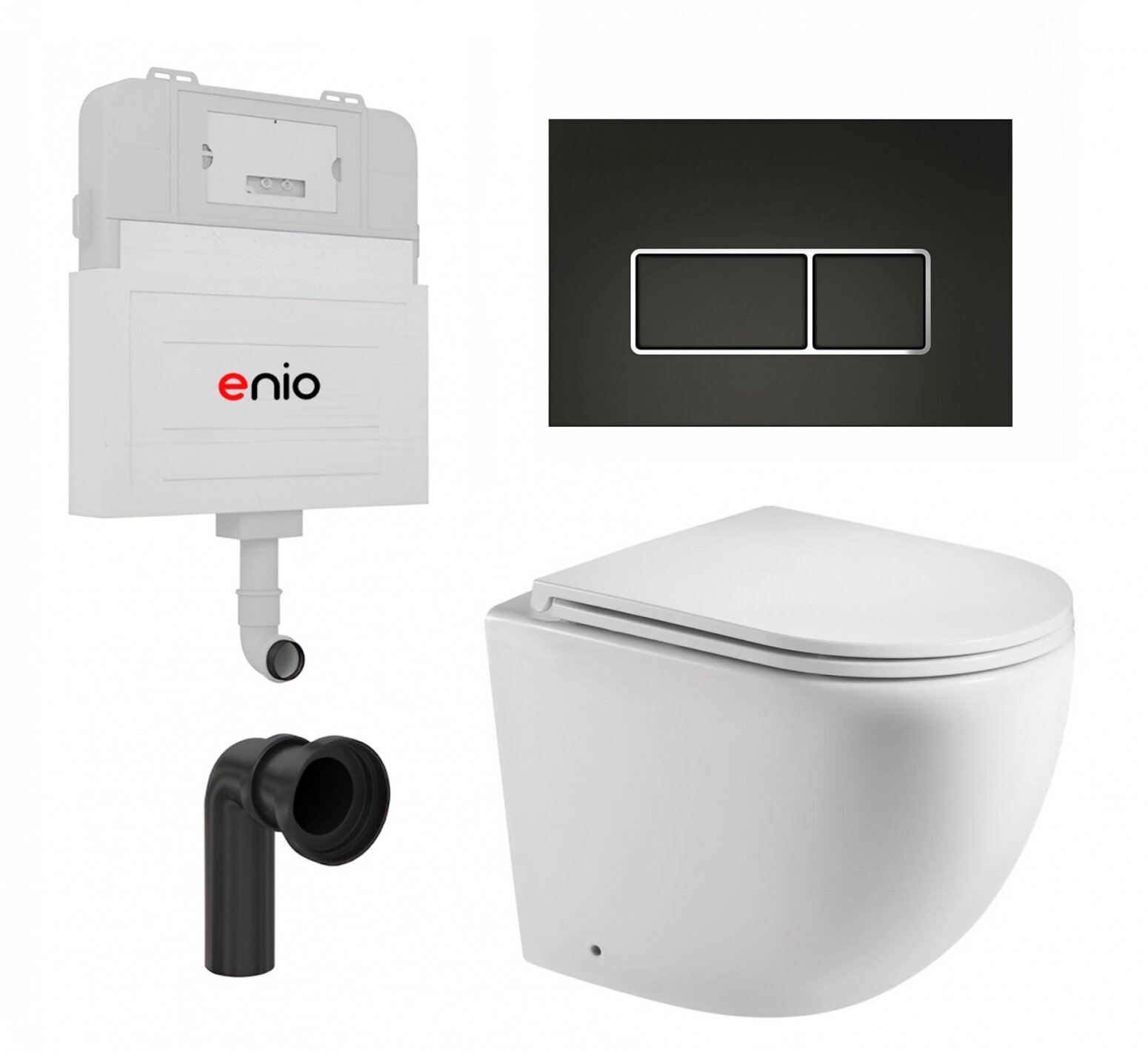 Комплект 3 в 1 смывной бачок скрытого монтажа Enio Tecnico EN8050817 + Приставной унитаз WeltWasser Merzbach 002 GL-WT + кнопка черная матовая, окантовка хром Rettangolo: сравнение цен, характеристики, фото, актуальное наличие и цены.