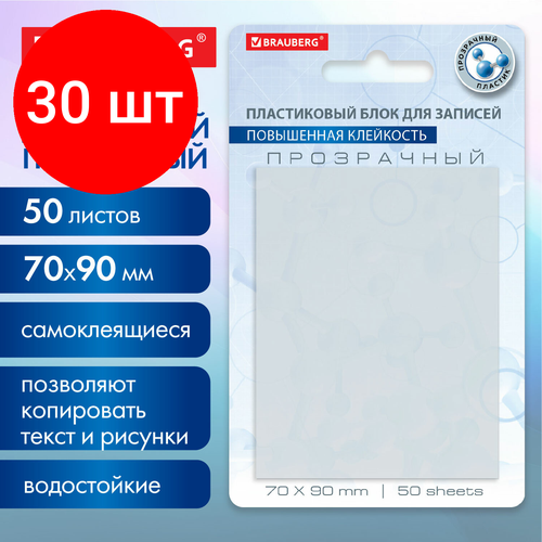 Купить Комплект 30 шт, Блок самоклеящийся прозрачный (стикеры) BRAUBERG TRANSPARENT 90х70 мм, 50 листов, 115206 с доставкой по всей России.