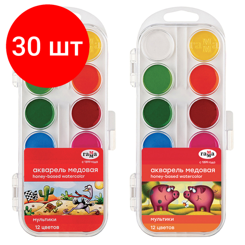 Купить Комплект 30 шт, Краски акварельные гамма «Мультики», 12 цв, медовая, без кисти, пластиковый корпус, европодвес, 211046_12 с доставкой по всей России.