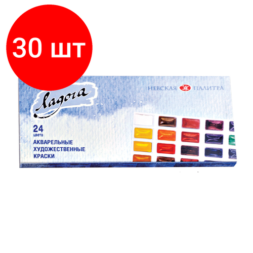 Комплект 30 шт, Краски акварельные художественные «Ладога», 24 цвета, кювета 2.5 мл, картонная коробка, 2041026: сравнение цен, характеристики, фото, актуальное наличие и цены.