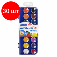 Купить Комплект 30 шт, Краски акварельные сухие BRAUBERG «PREMIUM» 16 цветов, круглые кюветы 23 мм, пластиковый пенал с европодвесом, 191744 с доставкой по всей России.
