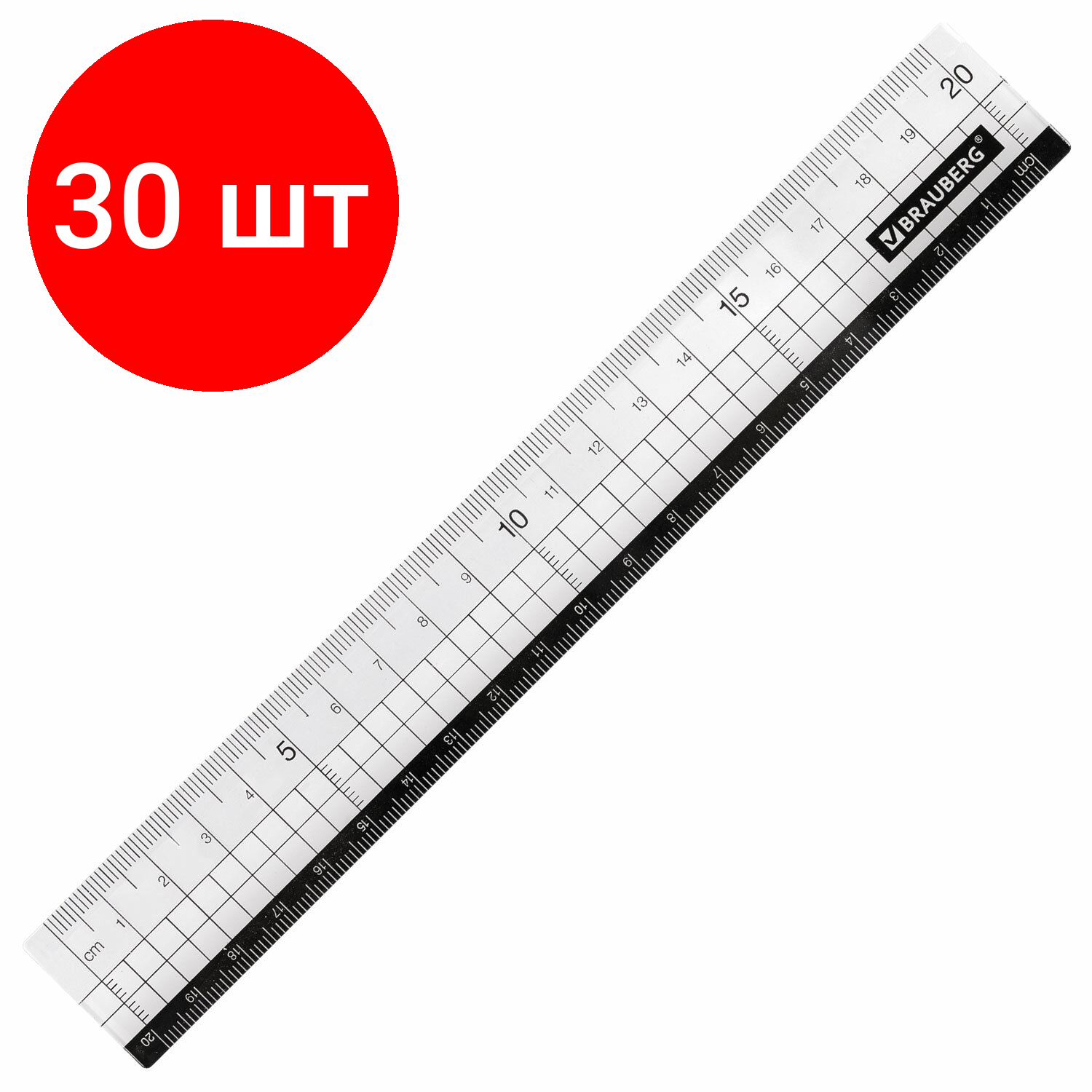 Комплект 30 шт, Линейка пластик 20 см BRAUBERG, прозрачная, черно-белая печать, европодвес, 210742: сравнение цен, характеристики, фото, актуальное наличие и цены.