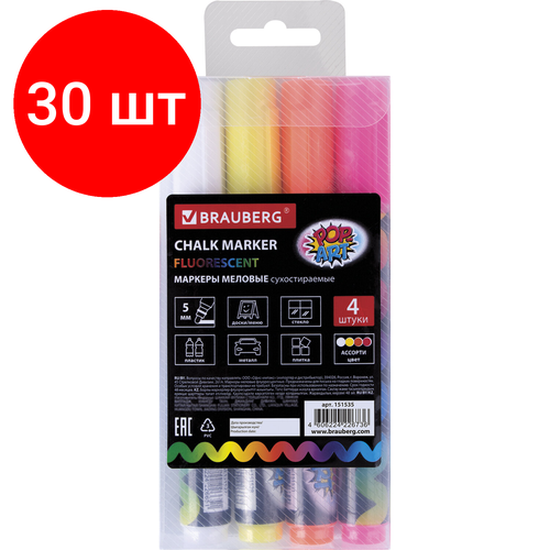 Купить Комплект 30 шт, Маркеры меловые «POP-ART», набор 4 цвета, 5 мм, сухостираемые, для гладких поверхностей, BRAUBERG, 151535 с доставкой по всей России. Комплект 30 шт, Маркеры меловые «POP-ART», набор 4 цвета, 5 мм, сухостираемые, для гладких поверхностей, BRAUBERG, 151535: сравнение цен, характеристики, фото, актуальное наличие и цены.