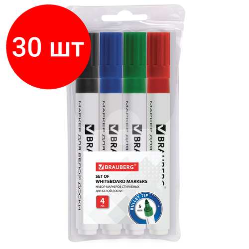 Купить Комплект 30 шт, Маркеры стираемые для белой доски набор 4 цвета, BRAUBERG, 5 мм, 150417 с доставкой по всей России.