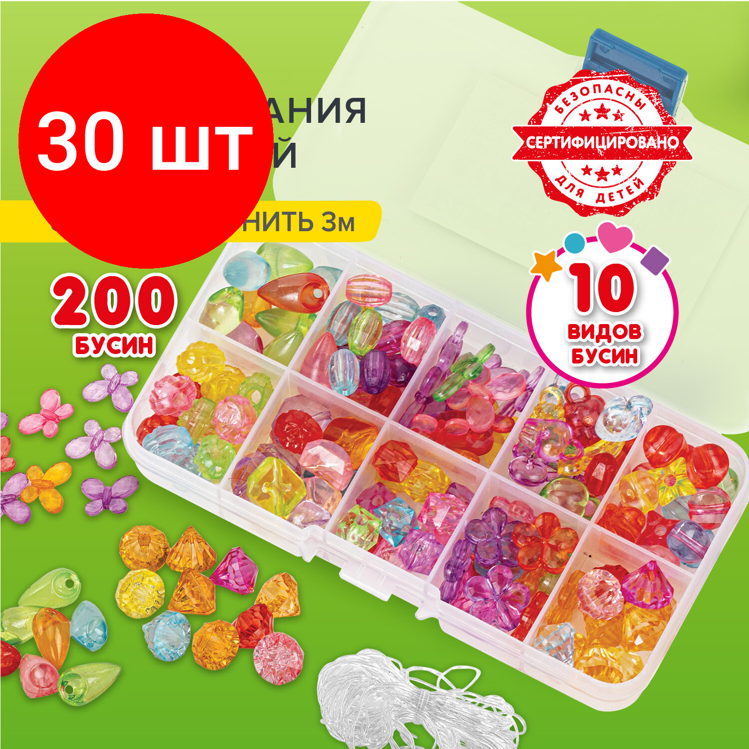 Комплект 30 шт, Набор BEADS SET для творчества, рукоделия, и созукрашений, 200 бусин, 10 видов, прозрачные, нить, BRAUBERG KIDS, 664694: сравнение цен, характеристики, фото, актуальное наличие и цены.