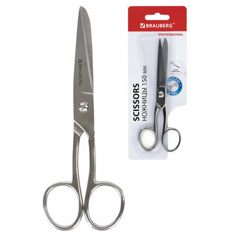 Комплект 30 шт, Ножницы цельнометаллические BRAUBERG «Professional», 150 мм, классической формы, 237101: сравнение цен, характеристики, фото, актуальное наличие и цены.