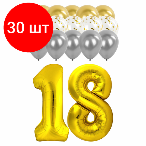 Купить Комплект 30 шт, Шары воздушные набор для декора «18 лет», 17 шаров, золото/серебро, BRAUBERG, 591900 с доставкой по всей России.