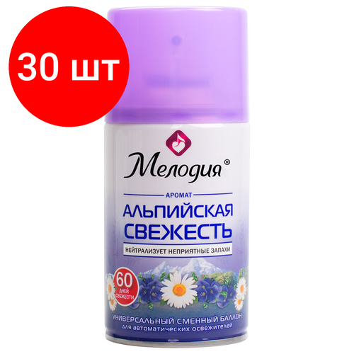Купить Комплект 30 шт, Сменный баллон 250 мл мелодия «Альпийская свежесть», для автоматических освежителей, универсальный, 605228 с доставкой по всей России.