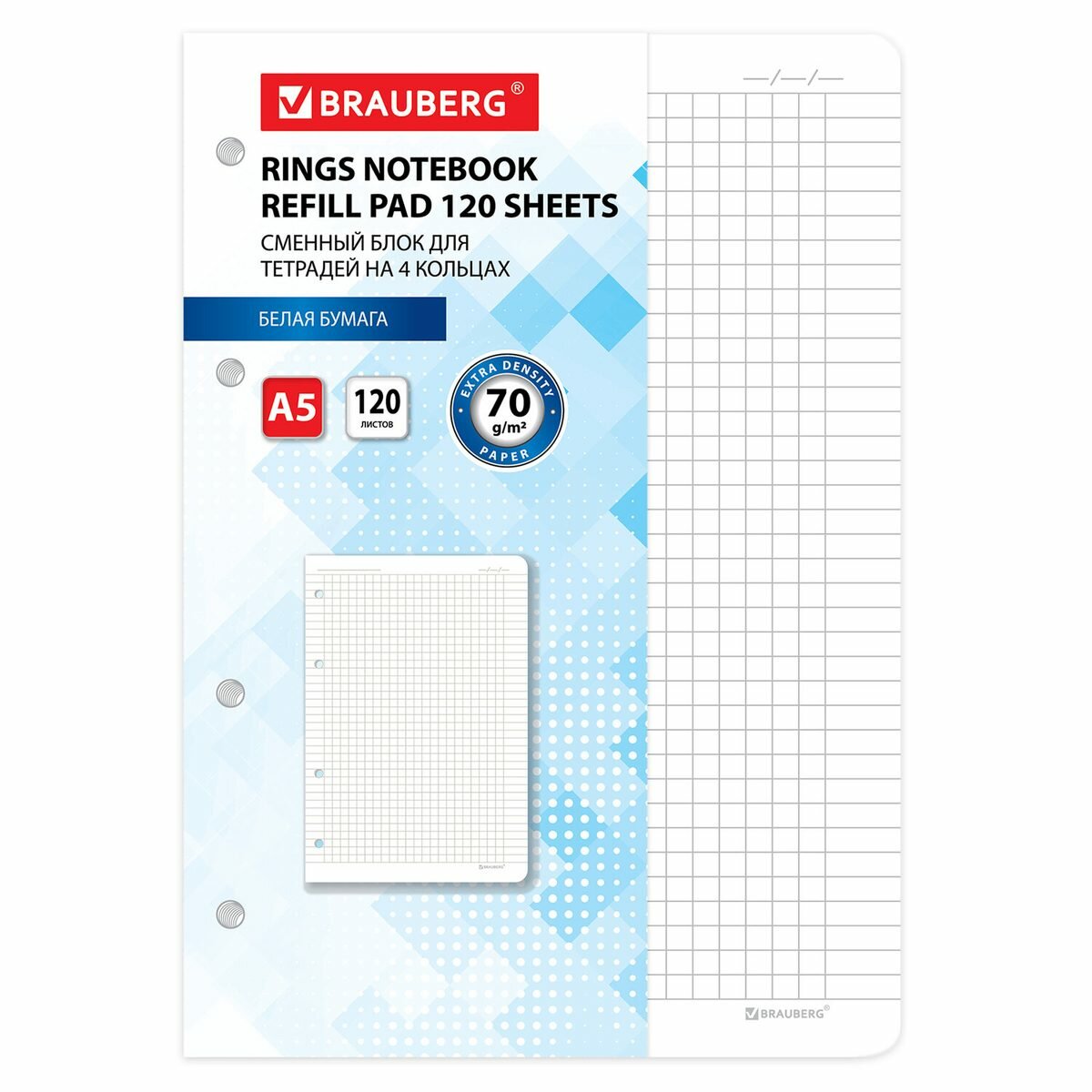 Купить Сменный блок для тетрадей А5, 120л Brauberg, клетка, белый, повышенная плотность (403638), 30шт. с доставкой по всей России.