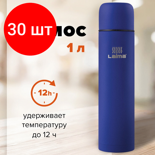 Комплект 30 шт, Термос LAIMA классический с узким горлом, 1 л, нержавеющая сталь, синий, 605124