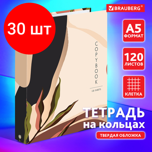 Комплект 30 шт, Тетрадь на кольцах 120л. А5 (175х215мм), обложка твердый картон, клетка, BRAUBERG, 1, 404075: сравнение цен, характеристики, фото, актуальное наличие и цены.