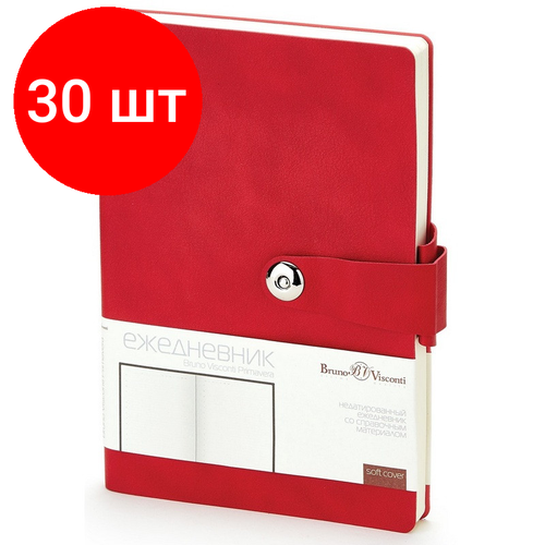 Внимание! Товар продается комплектом:[Ежедневник недатированный А5, Primavera красный, 136л. 3-536/02] X 30 шт. Ежедневник недатированный Bruno Visconti. Коллекция Primavera. Выпускается в гибкой обложке формата А5, размер ежедневника - 147x212 мм. Ежедневник Primavera стал лидером продаж уже в первый год своего пребывания на рынке. Переплетный материал - качественный кожзам красного цвета, по прочности и красоте не уступает натуральной коже. Ежедневник смотрится современно и эффектно за счет деталей: хлястика на магнитной кнопке, петли под ручку. Скругленная форма обложки и блока исключает заломы уголков. Есть возможность нанесения тиснения (блинт, фольга). Блок: недатированный, 136 листов (272 страницы), используется первосортная офсетная бумага бежевого цвета, печать в 2 краски. Плотность 70 г/кв. м. исключает просвечивание чернил. Для удобства навигации есть шелковая закладка-ляссе бордового цвета. Помимо места для записей внутри есть подборка справочной информации состоящей из 7 листов (14 страниц). Данные о часовых поясах, аэропортах мира, национальных праздниках, телефонных кодах пригодится в деловой и повседневной жизни. Поставляется в индивидуальной подарочной упаковке размером - 235x170x25 мм.