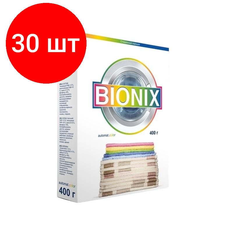 Купить Комплект 30 штук, Порошок стиральный Бионикс колор автомат, 400гр с доставкой по всей России. Комплект 30 штук, Порошок стиральный Бионикс колор автомат, 400гр: сравнение цен, характеристики, фото, актуальное наличие и цены.