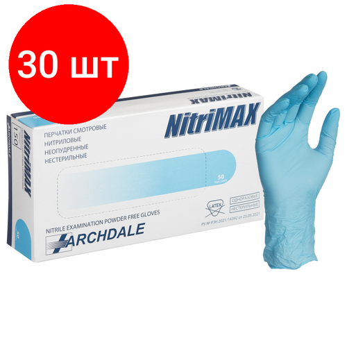 Комплект 30 упаковок, Мед. смотров. перчатки нитрил. н/с. н/о , голубые NitriMax (M) 50п/уп, 3гр: сравнение цен, характеристики, фото, актуальное наличие и цены.