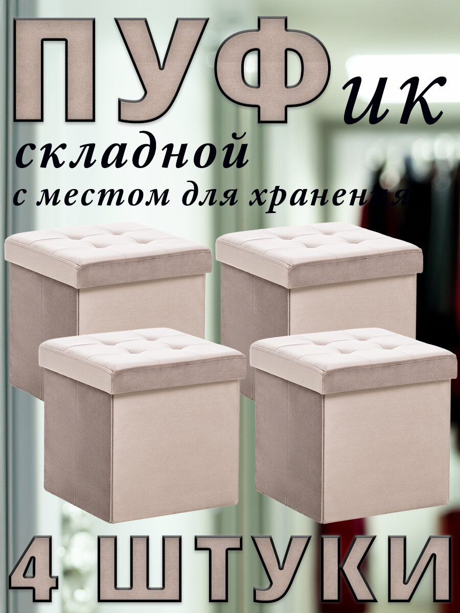 Комплект 4 Пуфа складных с крышкой PLUTO, с местом для хранения, Велюр, Какао, 38x38x38 см.: сравнение цен, характеристики, фото, актуальное наличие и цены.