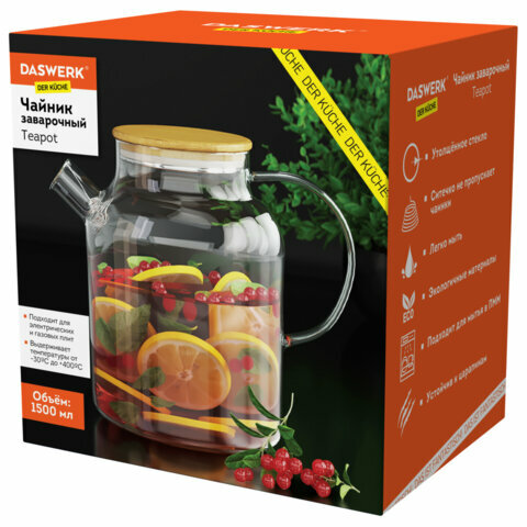 Комплект 4 шт, Чайник заварочный 1500 мл «Бочонок», жаропрочное стекло, спиральное сито, DASWERK, 608645: сравнение цен, характеристики, фото, актуальное наличие и цены.