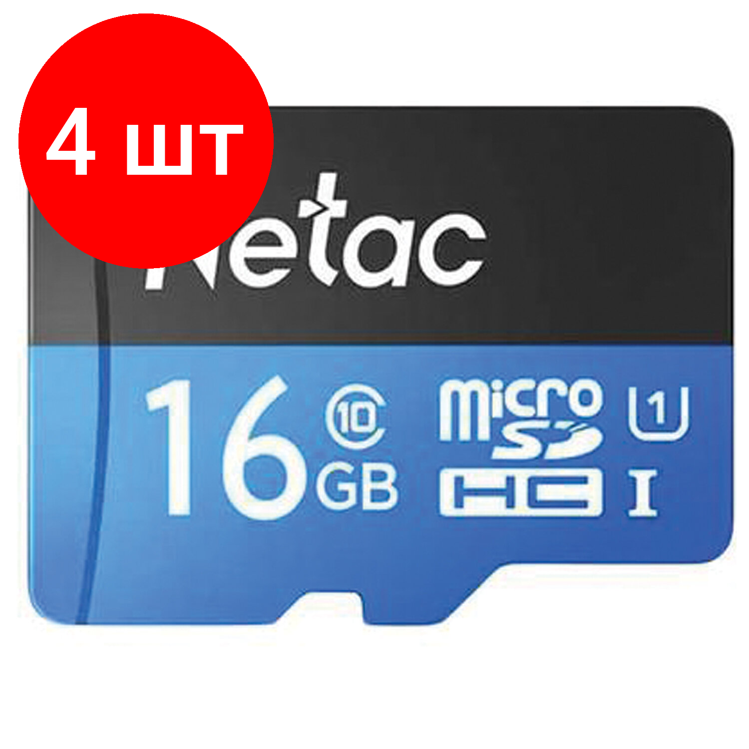 Комплект 4 шт, Карта памяти microSDHC 16 ГБ NETAC P500 Standard, UHS-I U1.80 Мб/с (class 10), адаптер, NT02P500STN-016G-R