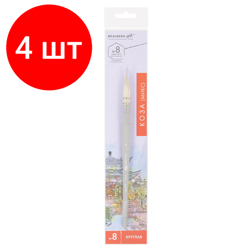 Комплект 4 шт, Кисть художественная профессиональная, коза, круглая, №8, BRAUBERG ART CLASSIC, 200956: сравнение цен, характеристики, фото, актуальное наличие и цены.